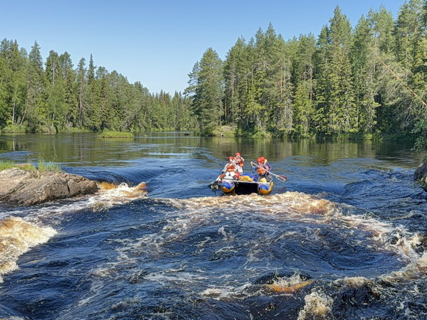 В середине июля пути двух детских объединений немного разошлись. Турклуб «Туристенок» через Северную столицу с 13 по 26 июля отправился в водный поход 1 категории сложности по Карелии, по реке Шуя. На 6 катамаранах ребята прошли на веслах 150 км, преодолели Шотозеро и Вагатозеро, 5 порогов 1ой категории сложности и 4 порога 2ой категории. Впечатленные красотой карельской природы, ребята даже стали слагать стихи и куплеты: