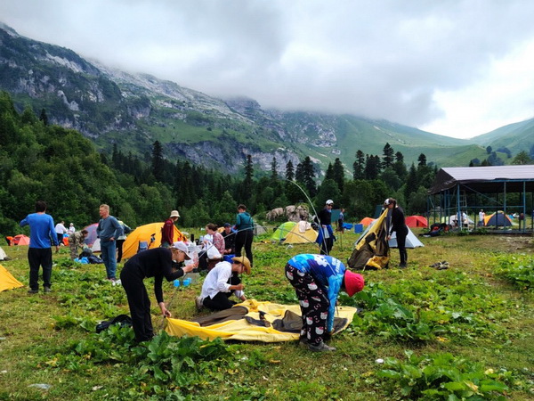 В эти же сроки туристы объединения «Спортивный туризм» покоряли горы Кавказа. Классический 30 маршрут был успешно преодолен группой, а наградой после тяжелого путешествия стало заветное море и возможность искупаться в нем.