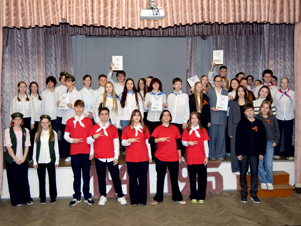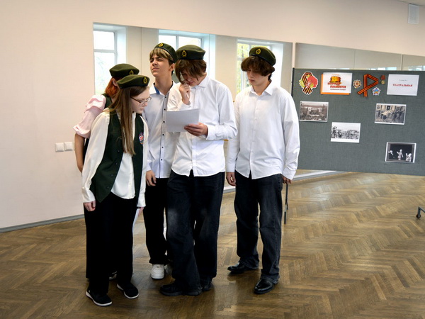 После прохождения всех станций, команды собрались в актовом зале и пели песни военных лет, пока подводились итоги результаты квеста.