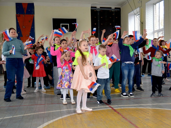 После прохождения всех станций, ребята снова встретились в спортивном зале, где каждый получил важный символ государства, олицетворяющий единство, независимость и гордость – флаг. Ярким завершением праздника стал флэшмоб и общее фото с огромным флагом, созданным самими детьми на одной из станций.