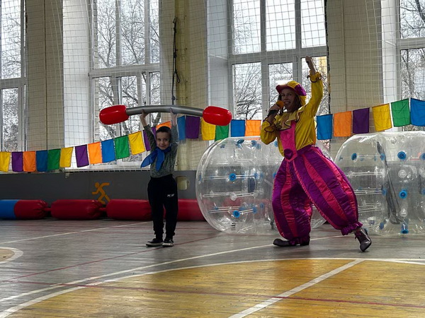 Гостей Центра встречали ростовые куклы, создавая атмосферу радости и веселья и приглашая на увлекательное путешествие по станциям с веселой клоунессой Клёпой.