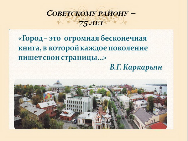 19 марта 2014г. в актовом зале Администрации Советского района г.о. Самара состоялось торжественное награждение участников районного конкурса творческих работ, посвящённого 75 – летию Советского района.