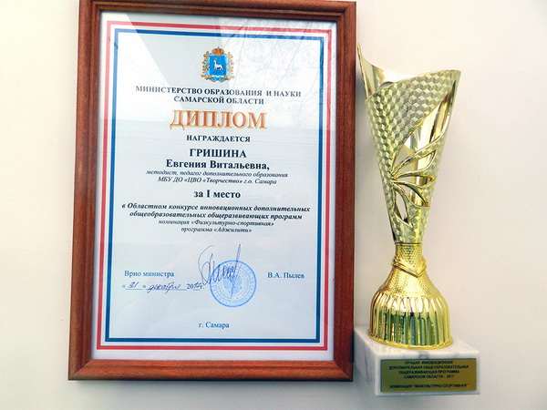 В номинации «Физкультурно-спортивная» лучшей инновационной дополнительной общеобразовательной общеразвивающей программой Самарской области – 2017 признана программа по кинологическому спорту «Аджилити» Гришиной Евгении Витальевны, молодого перспективного педагога дополнительного образования и методиста ЦВО «Творчество».