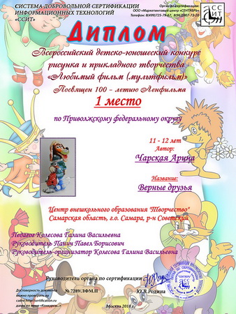 Учащиеся МБУ ДО «ЦВО «Творчество» г.о. Самара награждены дипломами за 1, 2 и 3 место.