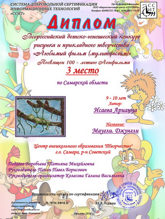 Всероссийский детско-юношеский конкурс рисунка и прикладного творчества «Любимый фильм (мультфильм)», проходивший с февраля по май 2018 г., был посвящен 100 – летию Ленфильма.