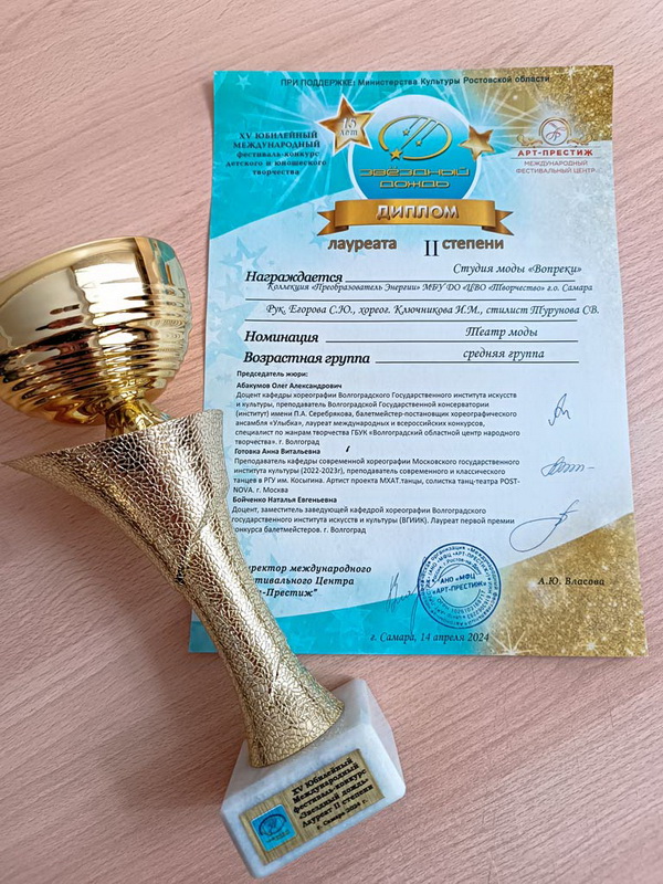 Студия моды «Вопреки» были награждены дипломами Лауреата II степени.