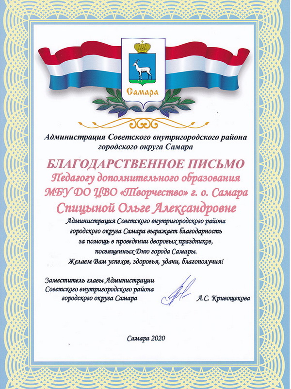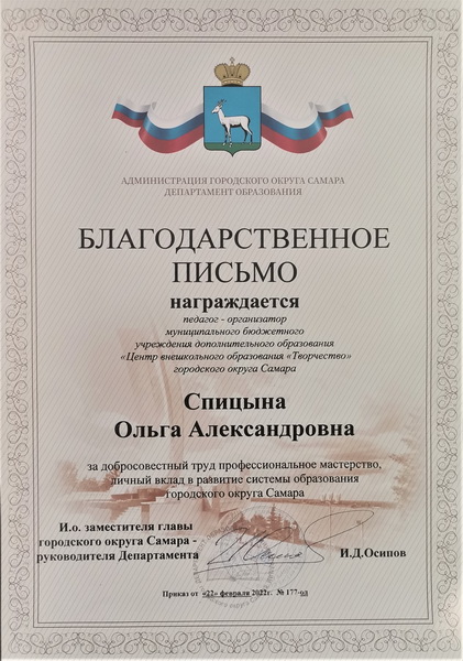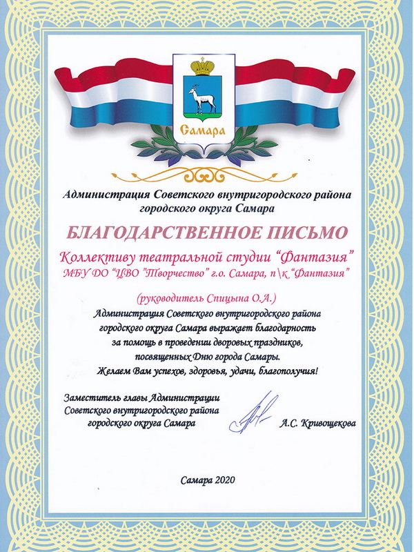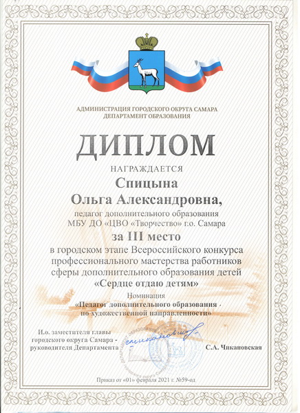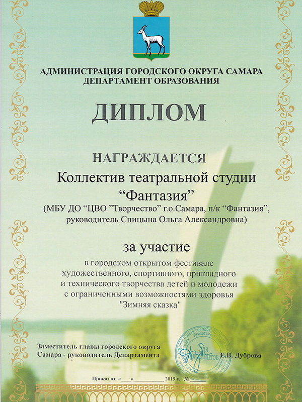- Руководитель детского объединения Театральная студия «Фантазия» - Спицына Ольга Александровна