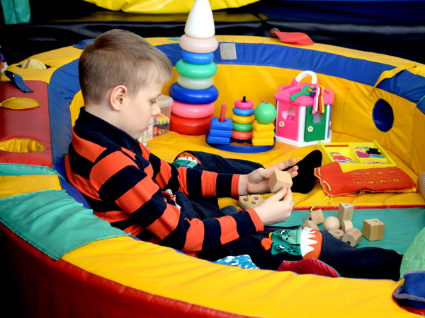 Кроме того, на занятиях уделяется внимание упражнениям для развития мелкой моторики, развитию речи, сенсорному воспитанию. Знакомство с геометрическим фигурами, цветом, величиной, положением в пространстве, со свойствами некоторых материалов происходит в укомплектованном игровом манеже.