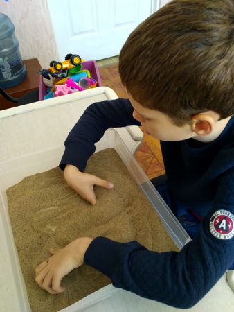 Песок нередко действует на детей как магнит. Их руки сами, неосознанно, начинают пересыпать и просеивать песок, строить тоннели, горы, выкапывать ямки. А если к этому добавить различные игрушки, тогда у малыша появляется собственный мир, где он выдумывает и фантазирует, и, в то же время, учится работать и добиваться цели.