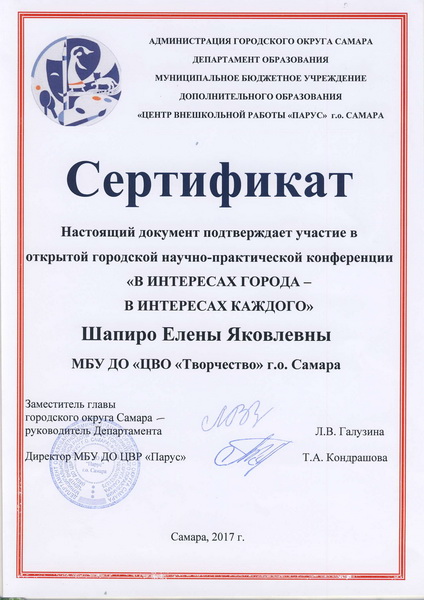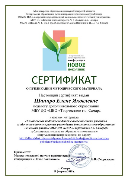 Руководитель детского объединения «Компьютер+» - Шапиро Елена Яковлевна, педагог дополнительного образования высшей категории, лауреат смотра-конкурса профессионального мастерства педагогических работников ЦВО «Творчество» «Час ученичества» в номинации «Преодоление» (работа с детьми-инвалидами). Педагогический стаж – 20 лет.