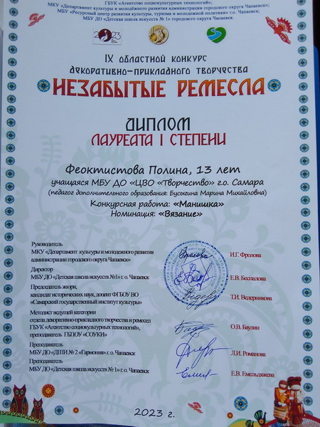 В детском объединении «Кружевница» осуществляется обучение девочек 11 -13 лет ручному вязанию и кружевоплетению на коклюшках, что положительно влияет на интеллект и творческое мышление ребёнка.