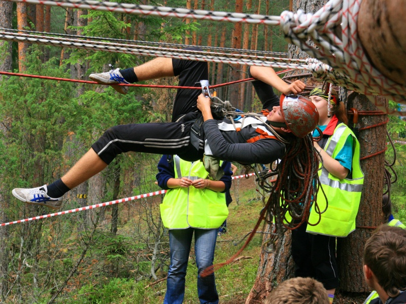 Переправа по бревну. Кубок турклуба "Туристёнок". Самара, 2004г.